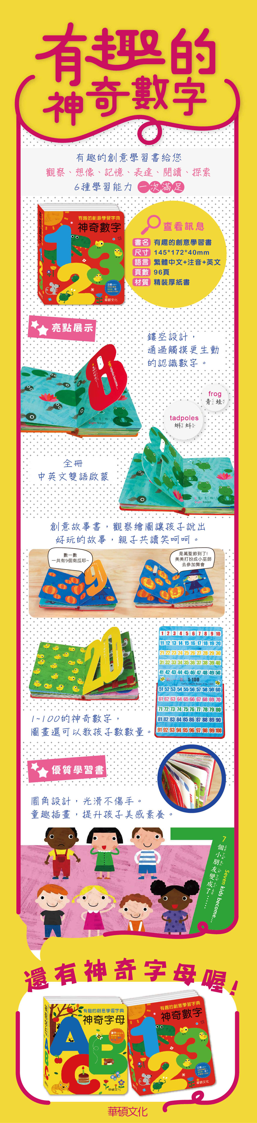 - 1~100的神奇數字,圖畫還可以教孩子數數量。