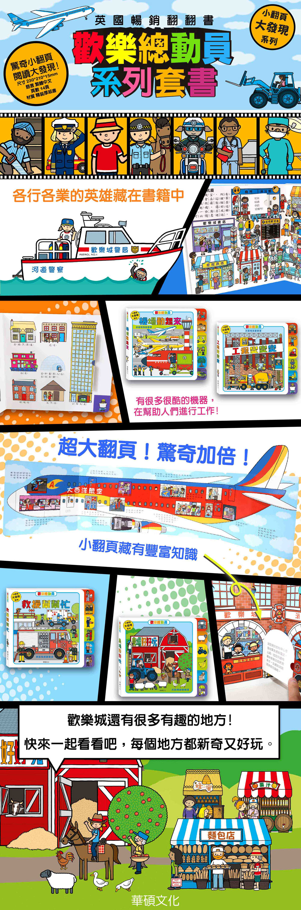 - 從小翻頁中發現生活中微小的細節,書中以機場做為場景,把龐大的知識變得簡單明瞭還可以延伸創造不同的小故事。