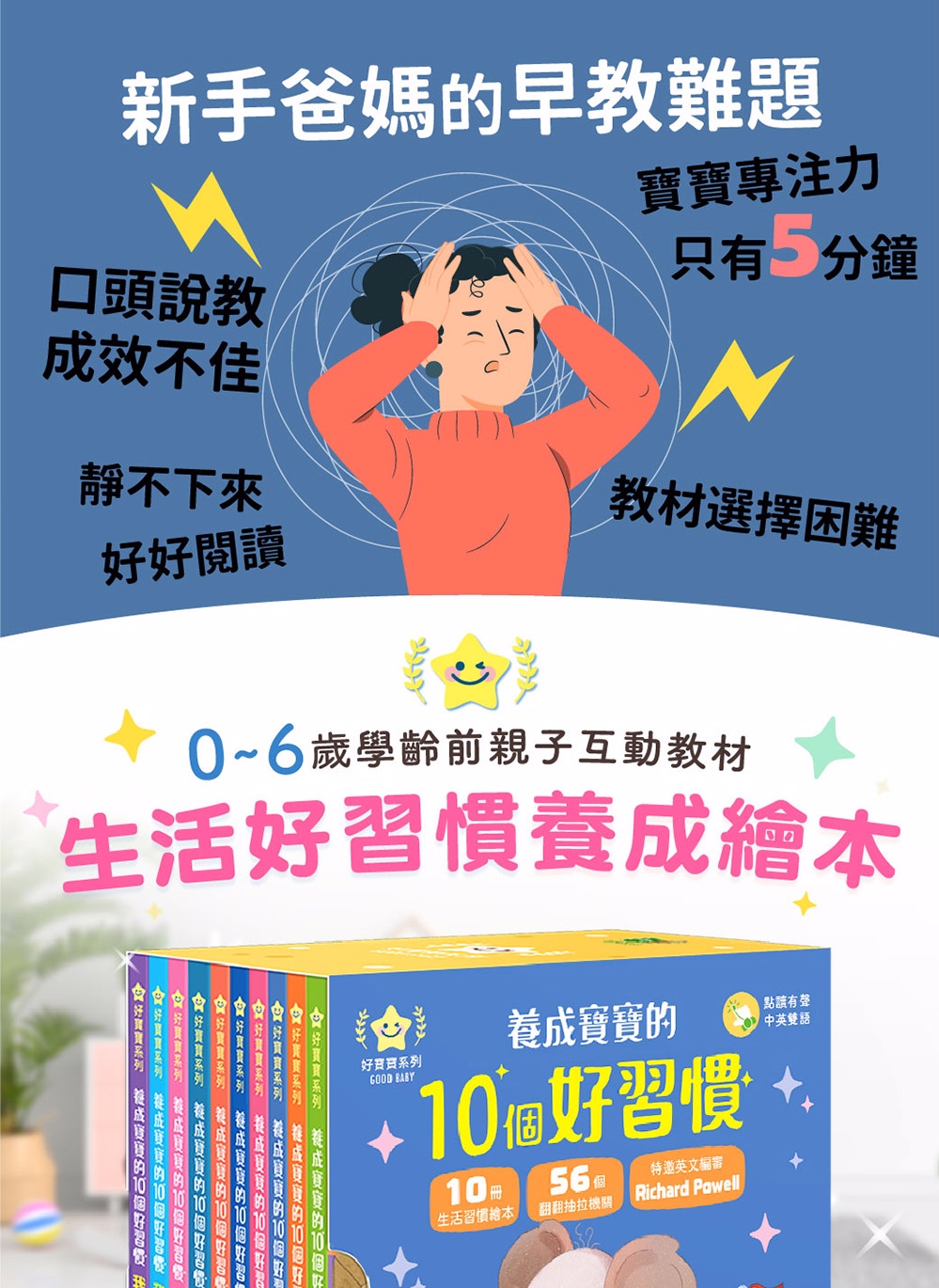 A088-1 養成寶寶的10個好習慣【點讀版】(全套10冊) ♥️ 附贈寶寶好習慣果凍貼