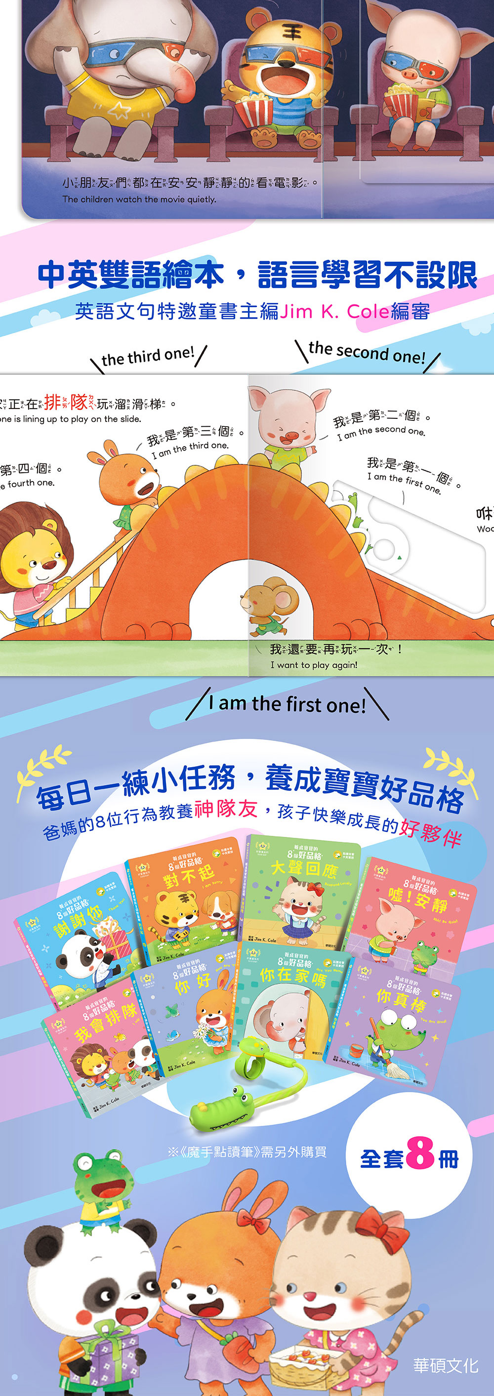 中英雙語上下對照,英語文句特邀英國童書主編Jim K. Cole編審,專為幼兒設計。