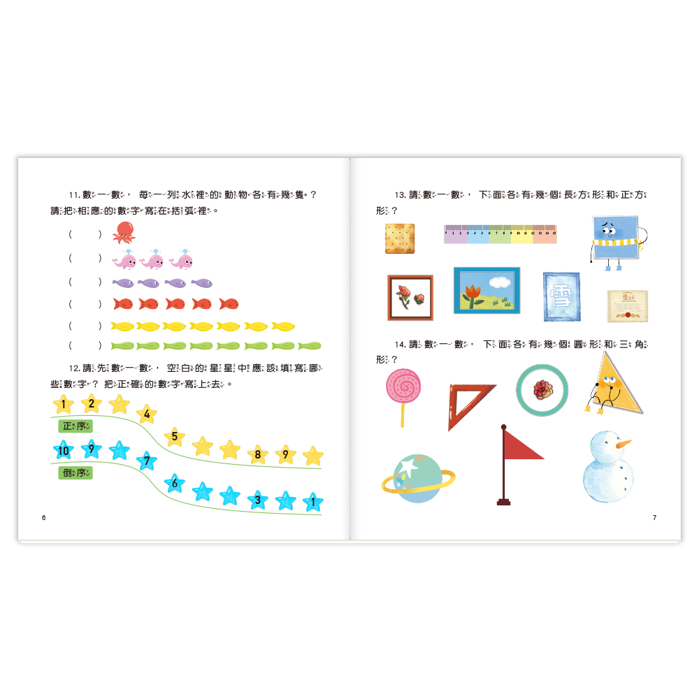 依照幼兒認知發展分為兩個學習階段,每本專注一個數學概念,讓孩子一步一步建立好基礎。