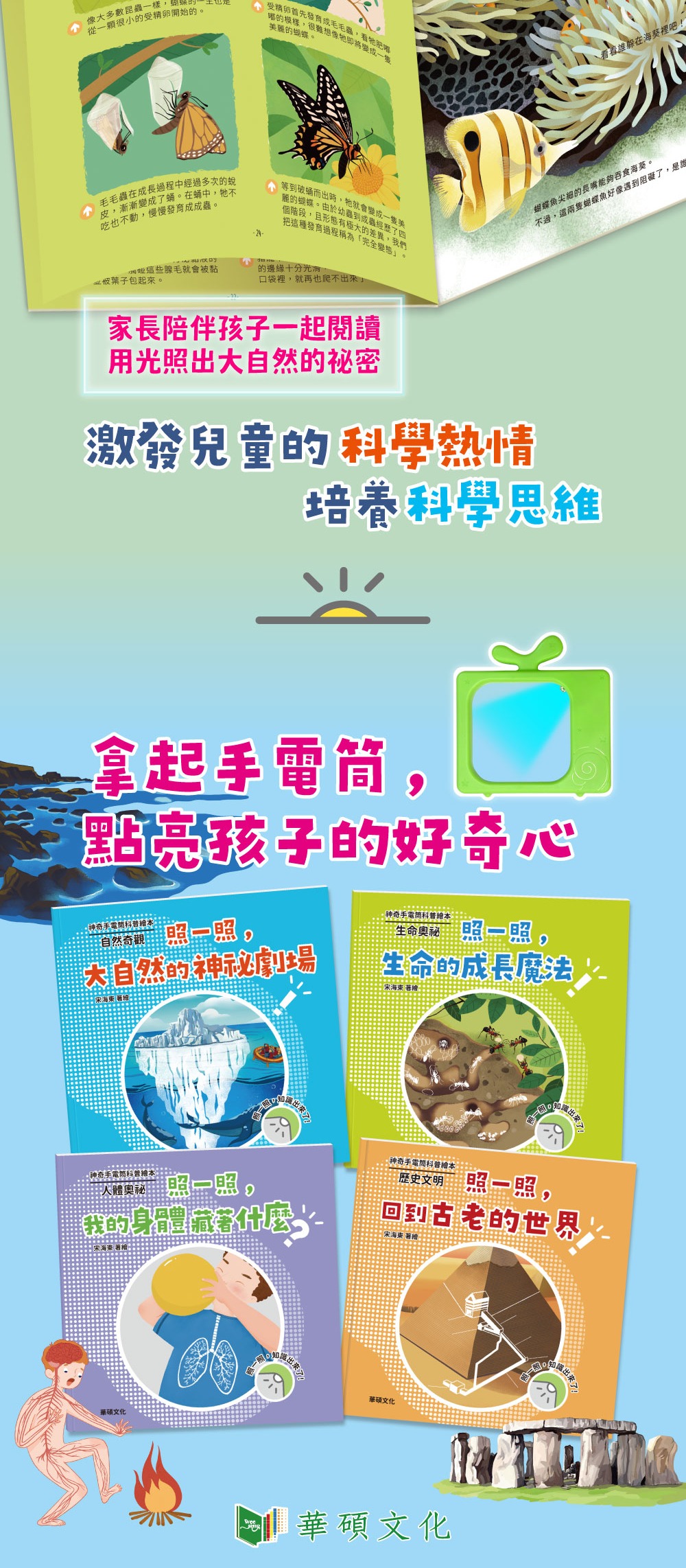 適合家長陪伴孩子一起閱讀,用光照出大自然的祕密,一起討論、觀察與發現,讓學習過程充滿驚喜與互動的樂趣。
