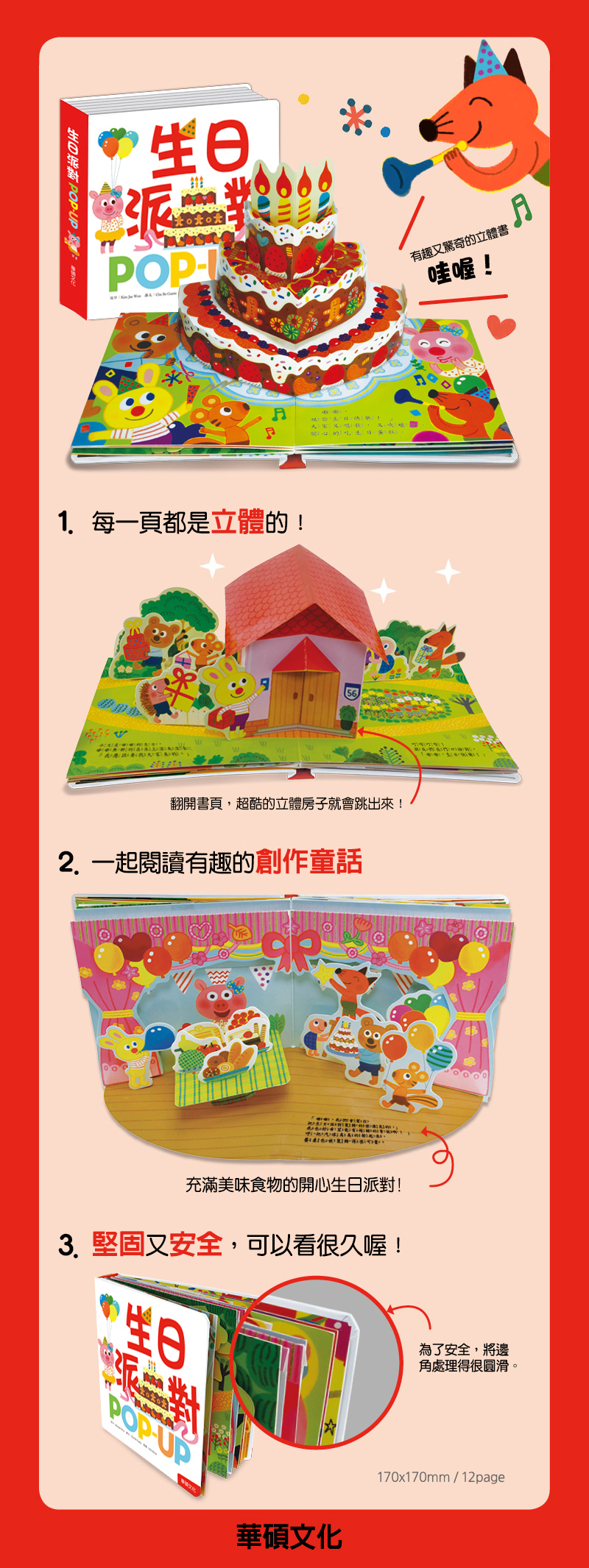 - 小豬嘟嘟的驚喜生日派對!紛飛的邀請卡、爆滿的禮物盒、豪華的巨大蛋糕,立體彈出呈現在眼前,一同享受派對吧!