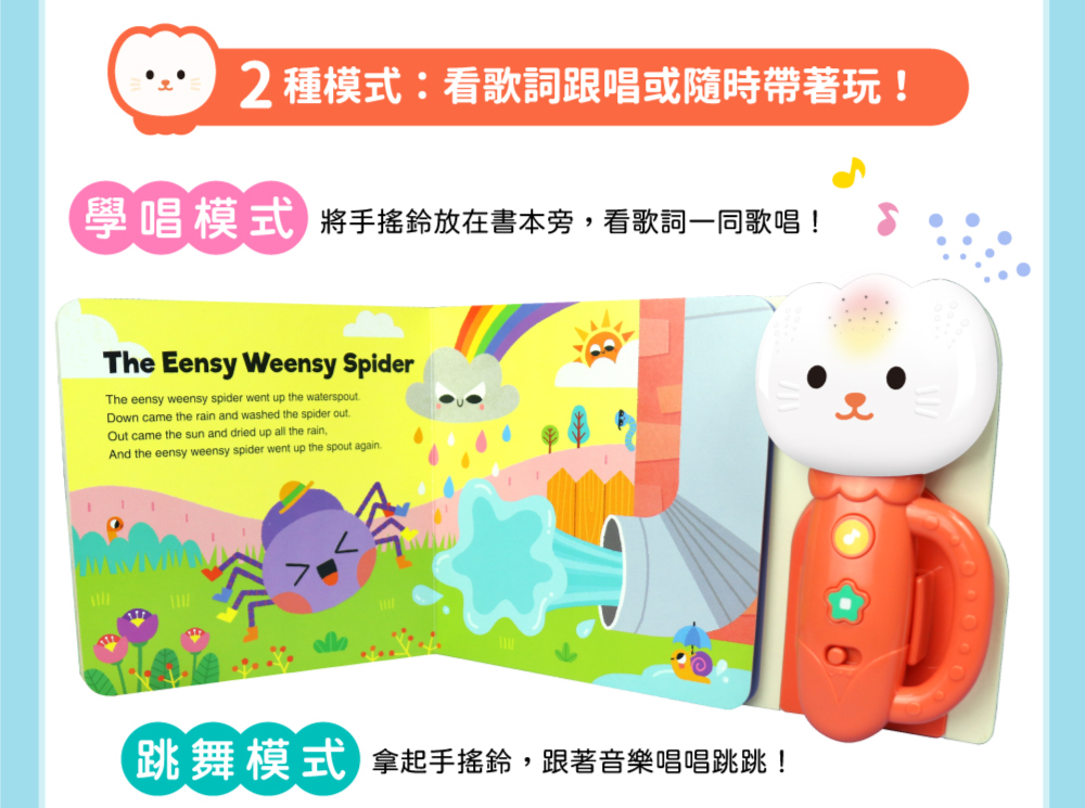 - 五首耳熟能詳的英語童謠,用音樂互動打造最適合0~3歲幼兒的英語童謠有聲繪本!
