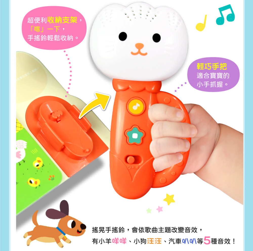 - 超可愛貓咪手搖鈴!跟著歌曲打節拍,搖動出趣味音效!