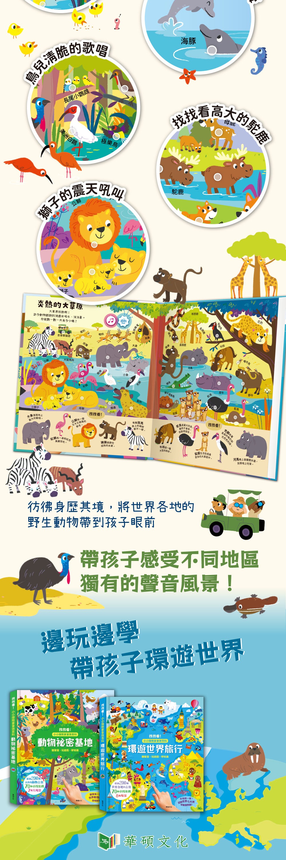 身歷其境的音效,讓孩子感受生態現場的氛圍。聲音不只是娛樂,也能提升孩子的聽覺辨識能力、記憶力及語詞聯想力。