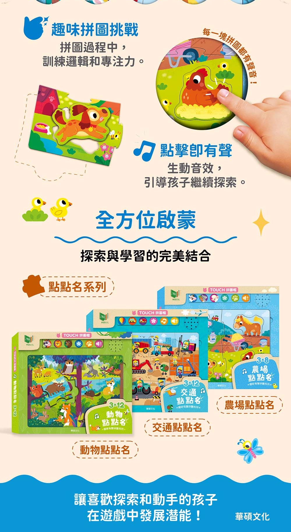 - 聆聽、觸摸、辨認,三合一感官啟蒙體驗!